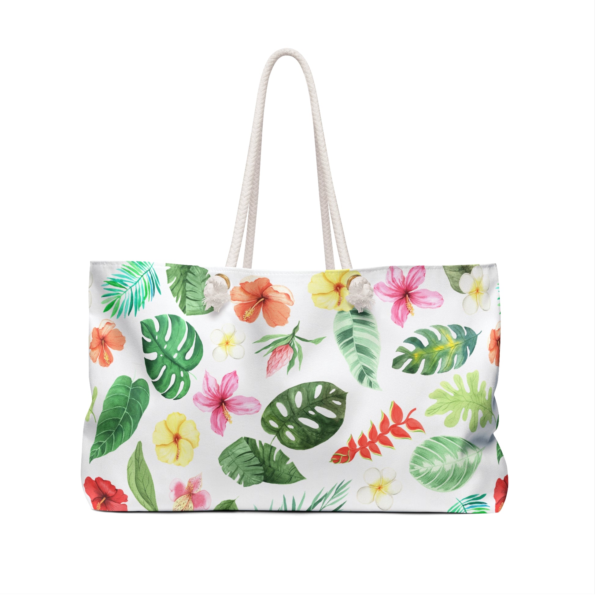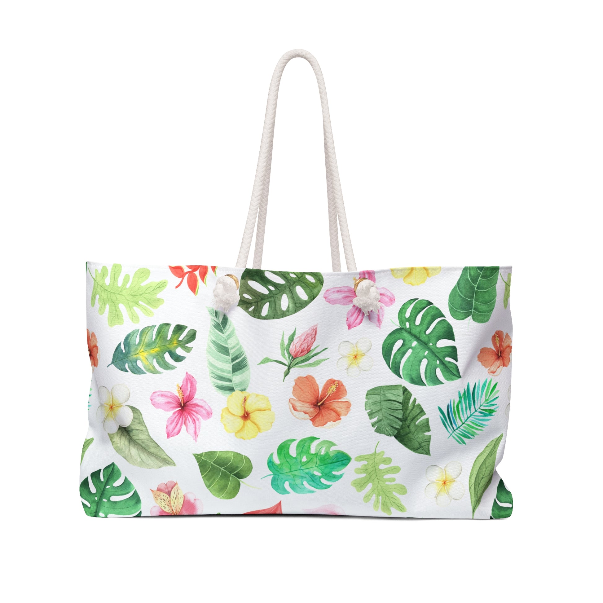 Pack your essentials and head out in style with our Tropical Getaway Weekender Tote! Designed for those spontaneous trips to the beach or weekend escapes, this spacious, durable bag makes packing a breeze. Featuring thick rope handles for easy carrying and a vibrant tropical design, it adds a splash of sunshine to any outing. The roomy interior offers plenty of space for your beach towels, snacks, and personal items, while the sturdy polyester exterior ensures it stands up to every adventure. Whether it's a weekend getaway or a quick trip around town, this tote is your perfect companion!